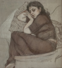 Self Portrait - linen, pastel