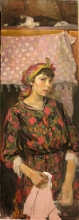 Young Hostess - canvas, acrylic, tempera, pastel