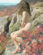 Nude Model On A Rocky Shore Of The Black Sea - oil, canvas
