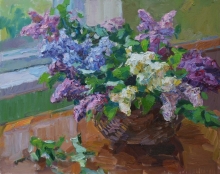 Lilac In The Basket - oil, canvas