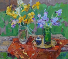 Still Life With Irises - oil, canvas