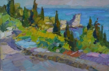 Through Cypresses - oil, cardboard