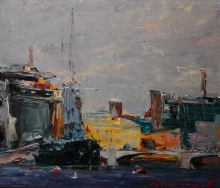 At The Pier - oil, canvas